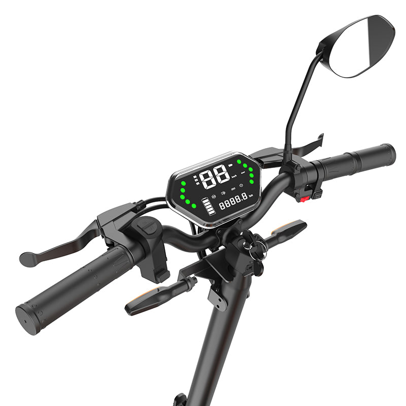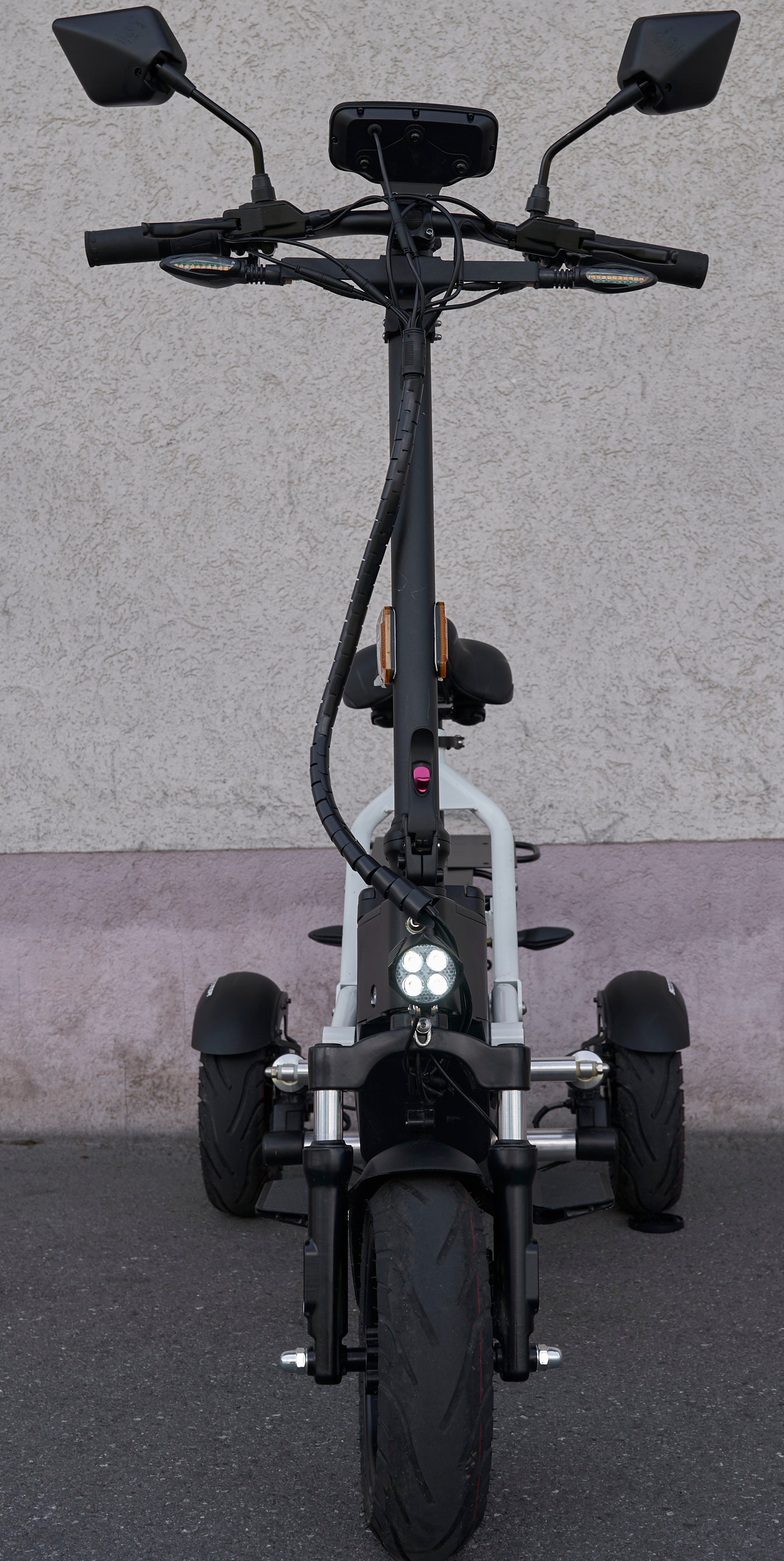 Mit diesem Power aus den beiden 500 Watt Motoren beschleunigst du unter 9 Sekunden auf 45km/h. Das Carving Fahrwerk ist Spass pur und mit den breiten Reifen hast du einen super Grip. Wenn du schwache Beine kriegst kannst du auch sitzend um die Kurven dûssen. Fûr diese Ausführung brauchst du ein Numernschild und den Fûhrerschein A1. Das gleiche E-Moped gibt es auch mit 2x 250 Watt mit 20 km/h und dies darfst du ohne Fûhrerschein fahren.